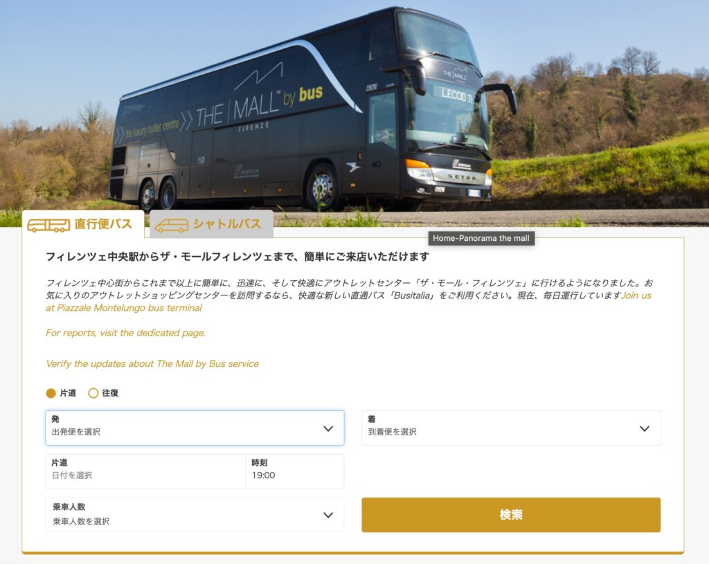 THE MALL FIRENZEの公式サイトにあるバスチケット購入リンクからオンラインで事前購入できます。