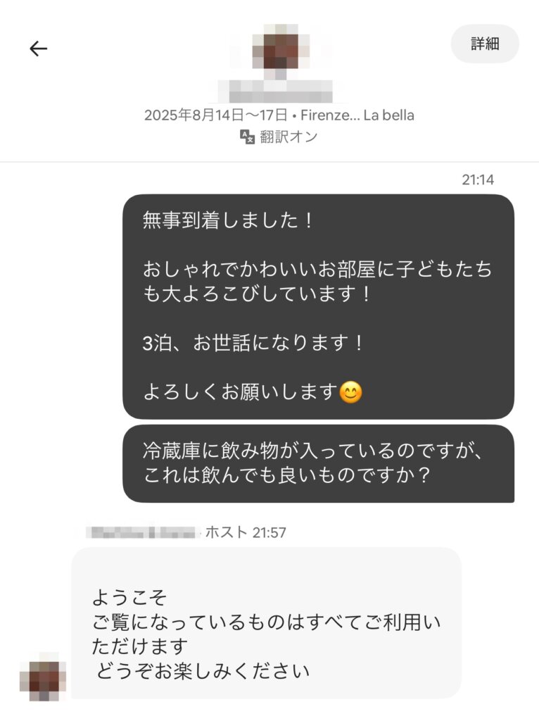 エアビーのメッセージは両者の言語を自動で翻訳してくれるので、外国人相手でも日本語入力でOK。