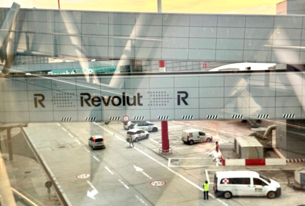 ■フィウミチーノ空港にて。Revolut広告、あちらこちらに。