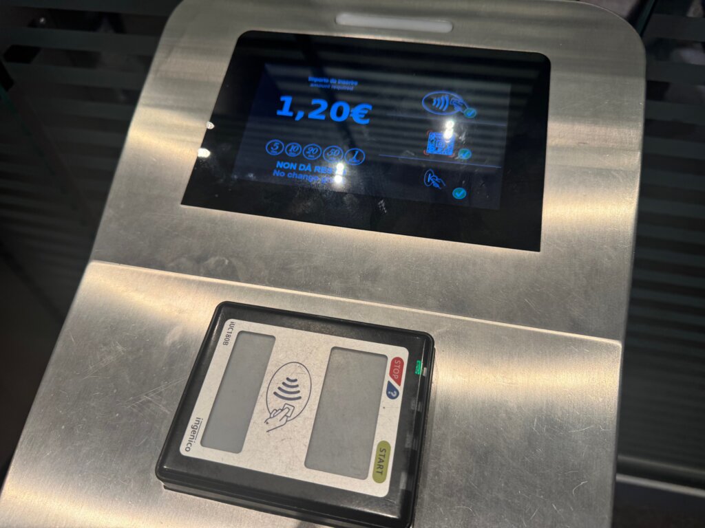 トイレ利用に1ユーロ硬貨いるかなーと思ってたんですが、多くの場所でクレジットカードのタッチ決済に対応したゲート式に置き換わっていました。おしっこするだけで1.2ユーロ(172円換算で206円)かかりました。ちびりそう。
