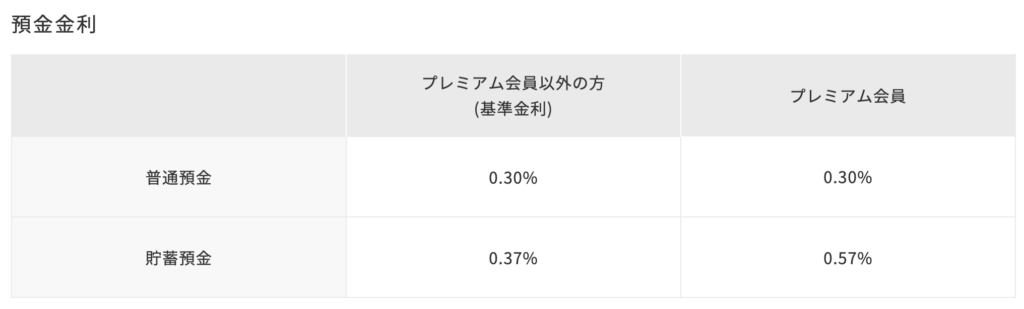 預金残高関係なく普通預金で年利0.30%は破格。これを貯蓄預金に入れておくと0.37%に、プレミアム会員であれば0.57%にアップ。預金移動はドラッグアンドドロップという使いやすさもおすすめできるポイントです。