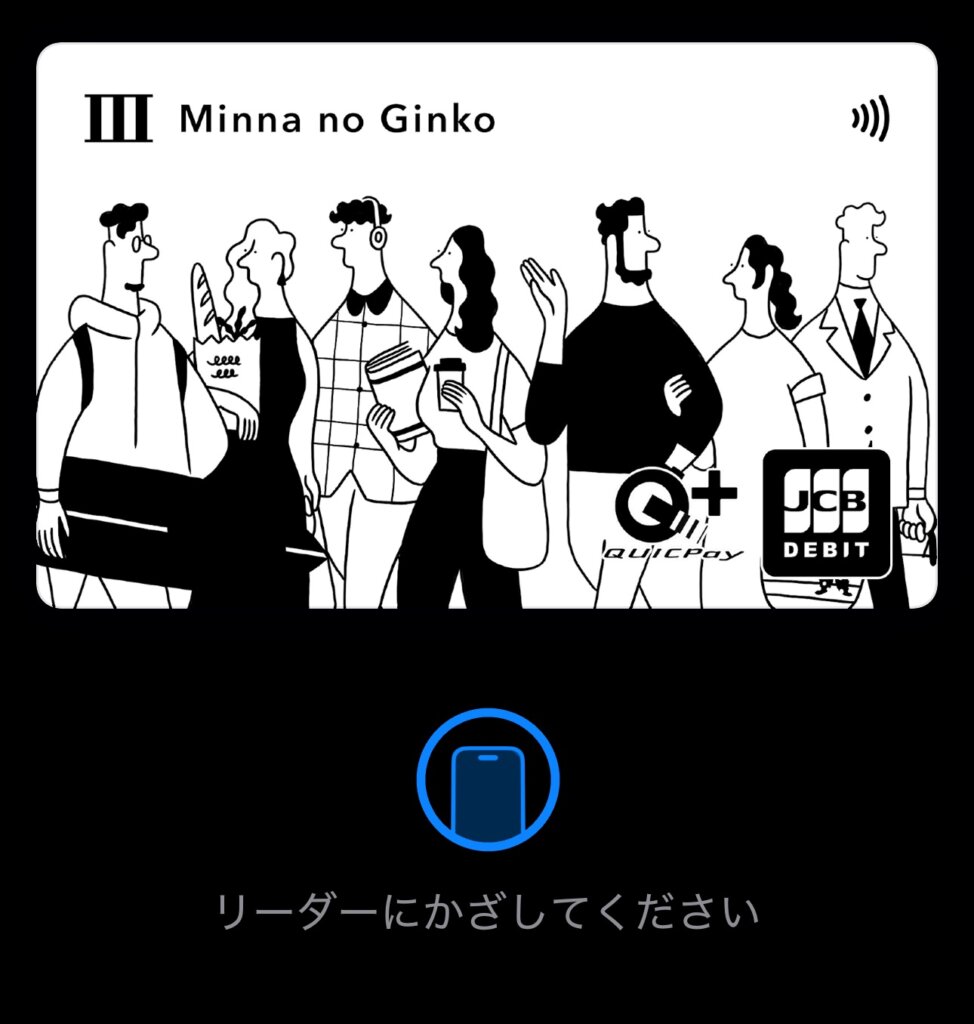 みんなの銀行のデビットカード(バーチャル)をスマホのウォレットに登録しておけば、JCBのタッチ決済QUICPayでのデビット決済が可能!