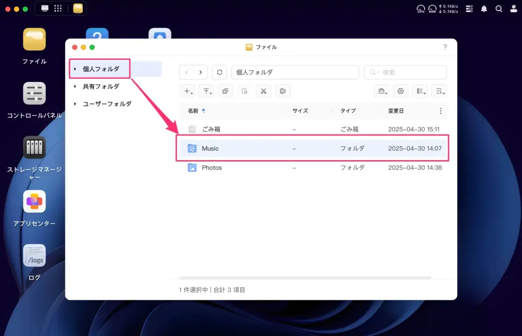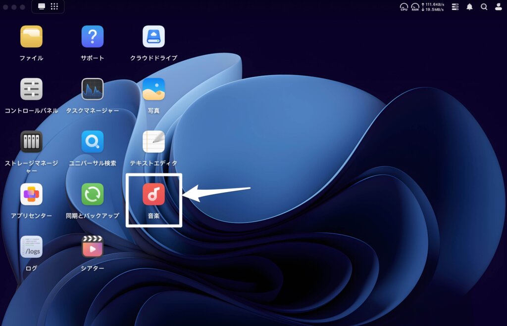 続いて、UGREEN NASの音楽アプリを立ち上げます。
