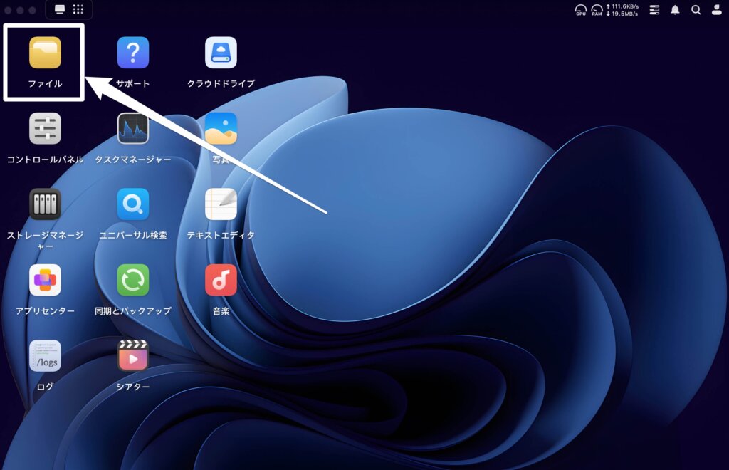 NASyncアプリを立ち上げ、ファイルアプリにアクセスします。
