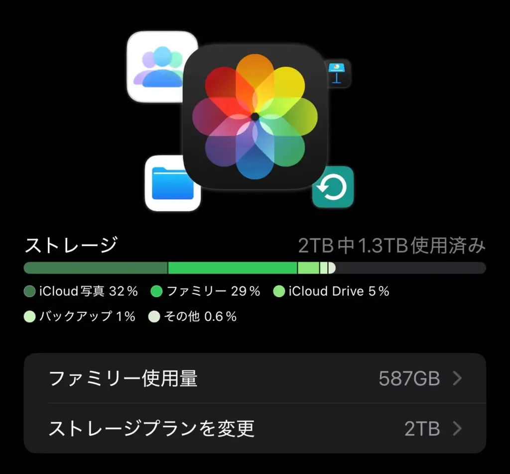 妻・娘とファミリー共有しているので、現在2TBを利用中。