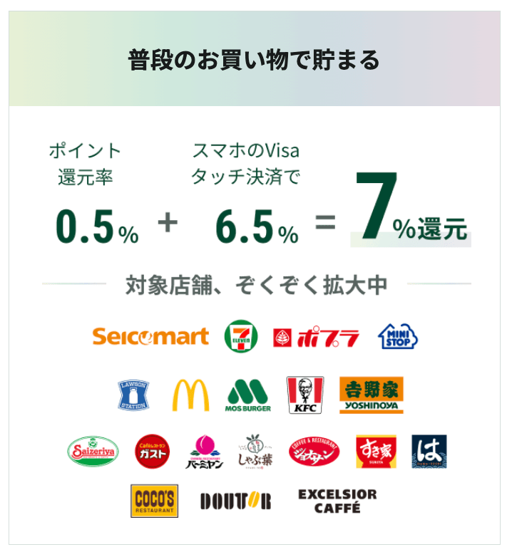 7%対象の店舗では三井住友カードを使うことでこれまで以上にポイントを獲得できて、PayPayポイントとVポイントをシームレスに貯められるようになります。