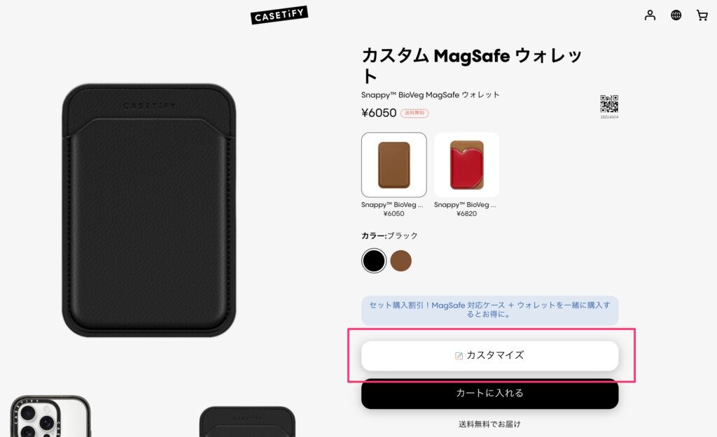 カスタムできる項目は商品ごとに若干異なりますが、Magsafeウォレットだと、