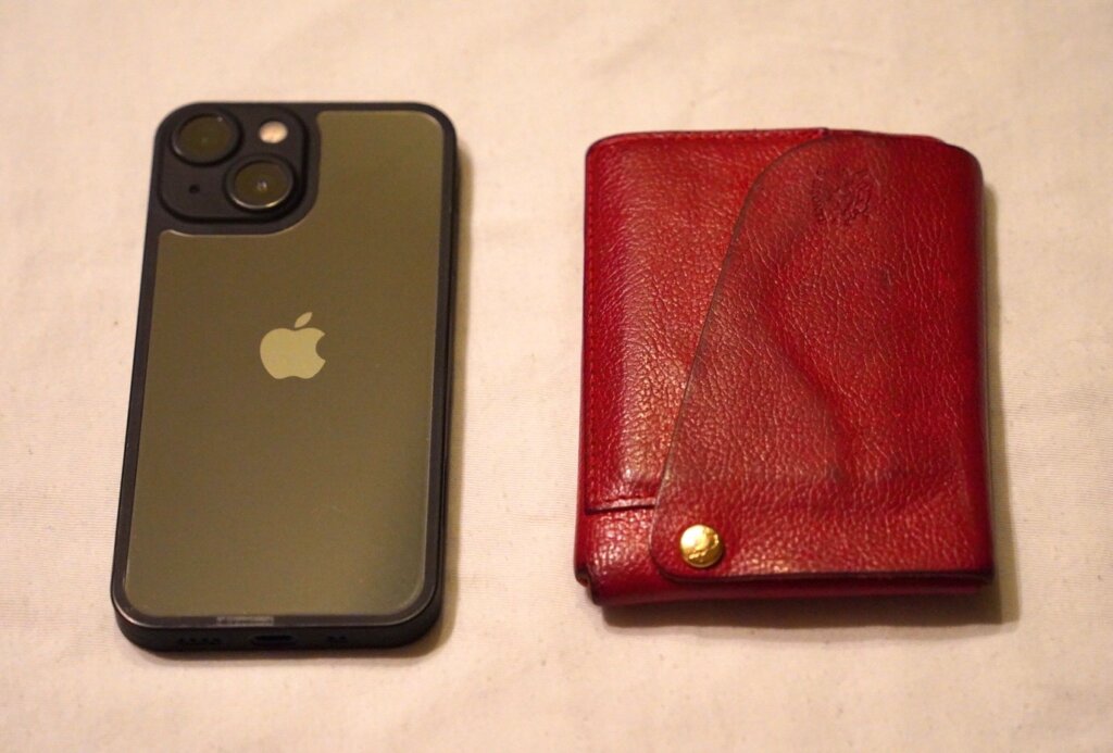 ■iPhone13mini(当時)とイルビゾンテカードケース(生産終了)