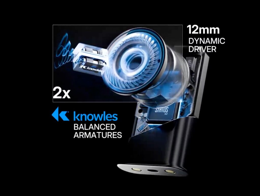 高音域と低音域を担当する2つのバランスドアーマチュアドライバーは、補聴器分野などで実績・定評のあるKnowles製に置き換えられ、さらに明瞭なサウンドが楽しめるようになりました。