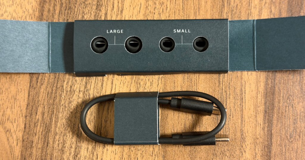 その下に充電ケーブルと別サイズのイヤーチップが。