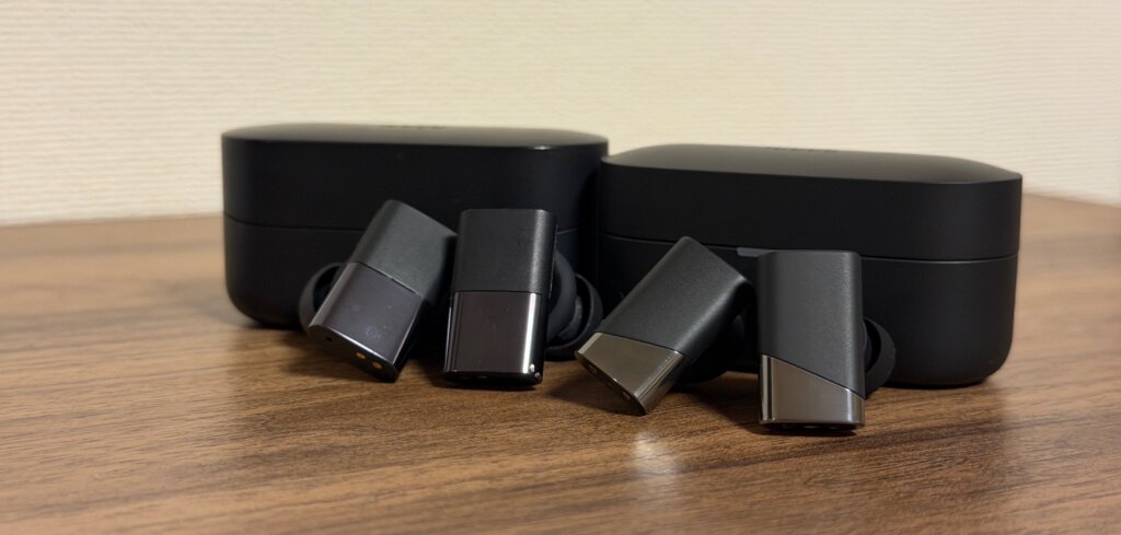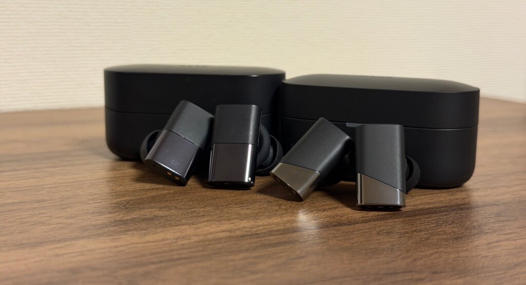 Pro Xが右。Between 3ANCからさらに磨き上げられているのがわかります。充電接地部がある本体底面までメタルカラーパーツになりました。