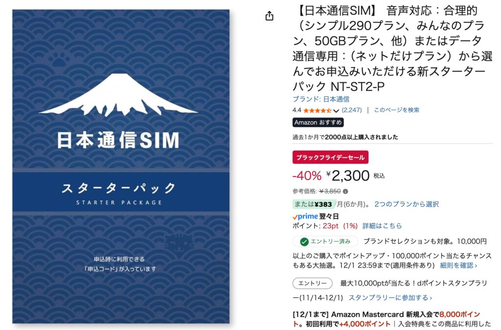 スターターパックの購入代金がかかるものの、契約時に発生する初期手数料は無料。セール価格で買えたので、ここも若干節約できました。