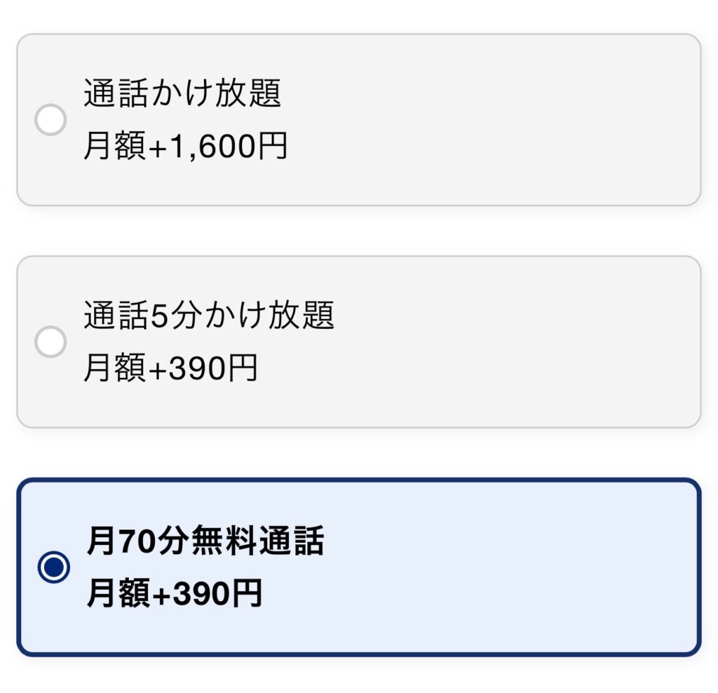 5分を超える通話もたまにあったりするので、今回は月70分無料通話にしてみました。