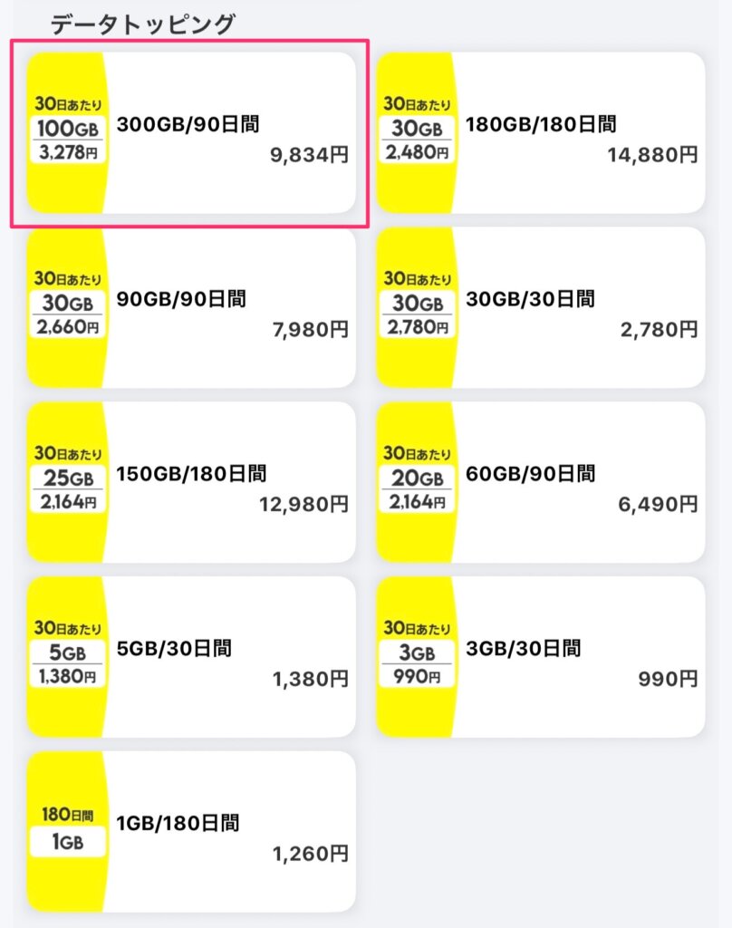 3か月で300GB使えるので、1か月あたり100GB使える計算です。