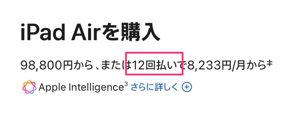 iPadシリーズなら分割回数を倍にできるので月々の支払い額を半分にできます。