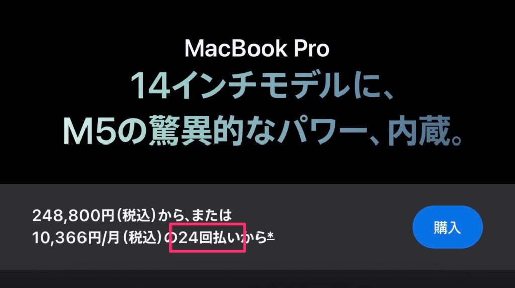 iPhoneより高いMacBookProが24回までしか分割できなかったり、